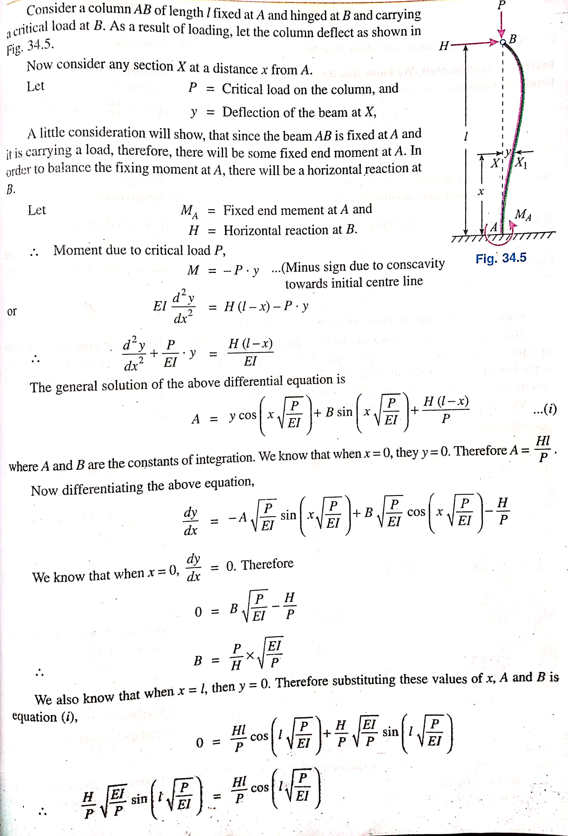 Now we shall discuss the value of critical load for all the above mentioned type of end conditions of columns one by one.